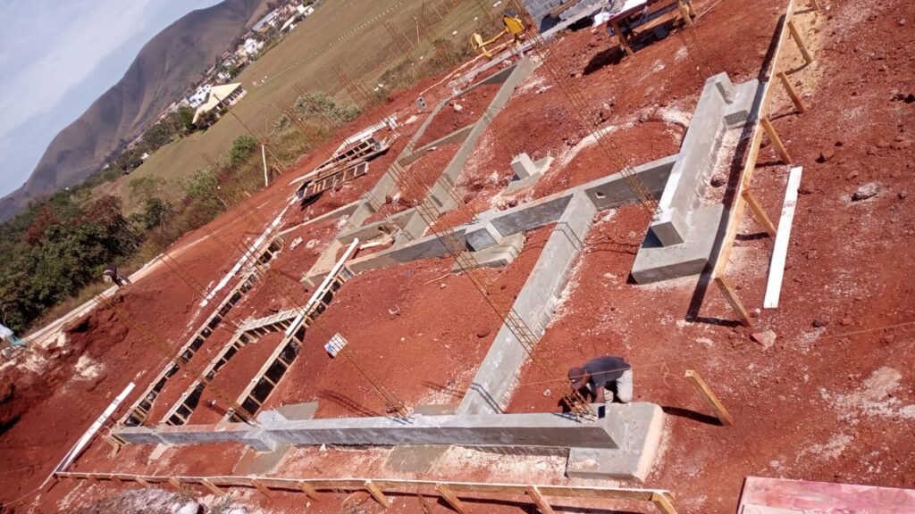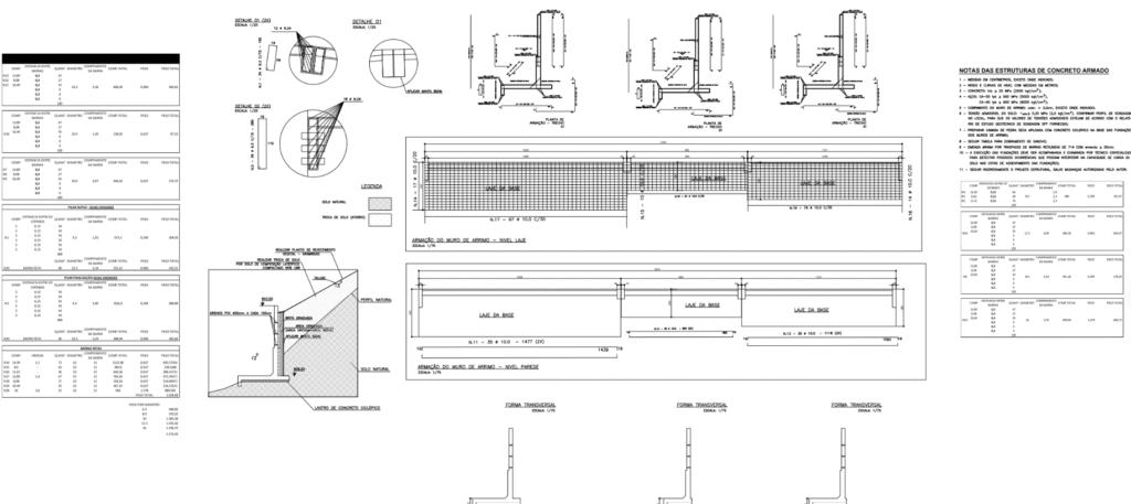 - 🧱 Desenvolvimento do projeto estrutural e acompanhamento da execução do muro de contenção em divisa, com cerca de 30 metros de extensão e 5 metros de altura, garantindo segurança ao terreno e aos imóveis vizinhos
